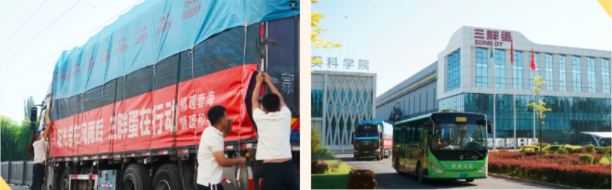 從區(qū)域品牌到全國領(lǐng)先,一路成為農(nóng)業(yè)產(chǎn)業(yè)化國家重點(diǎn)龍頭企業(yè),三胖蛋的成長路上,始終離不開家鄉(xiāng)的支持和關(guān)懷。帶著向日葵“一生向陽”的韌勁,挺身而出,用愛心物資搭起溫暖的橋。